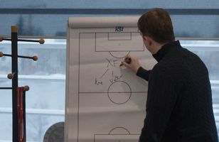 „Ég vildi reyna að skipta boltaum allavega einu sinni á milli kanta áður en við færum að senda boltann inn á teig. Það voru vissulega opnanir fyrir okkur að spila boltanum inn á miðsvæðis og færa svo yfir á gagnstæðan kant og skapa þar og koma okkur í betri möguleika á að spila okkur í gegn. Mér fannst við aftarlega þegar við settum boltann inn á teig.“