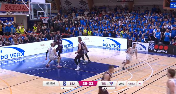 Lýsendur Sýnar Sport á leik tvö í einvígi Stjörnunnar og Tindastóls áttu vart orð yfir tilþrifum Luka Gasic sem varði tilraun Taiwo Badmus, leikmanns Tindastóls til þess að troða yfir hann.