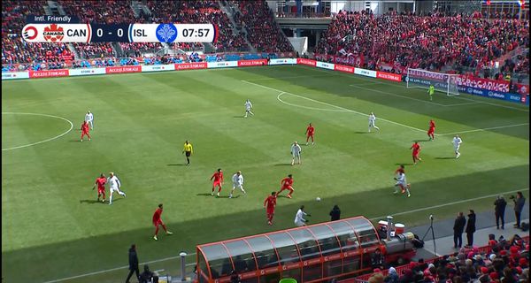 Orri Steinn Óskarsson skoraði annað mark Íslands á 21. mínútu í vináttulandsleik á móti Kanadamönnum 28. mars 2026.